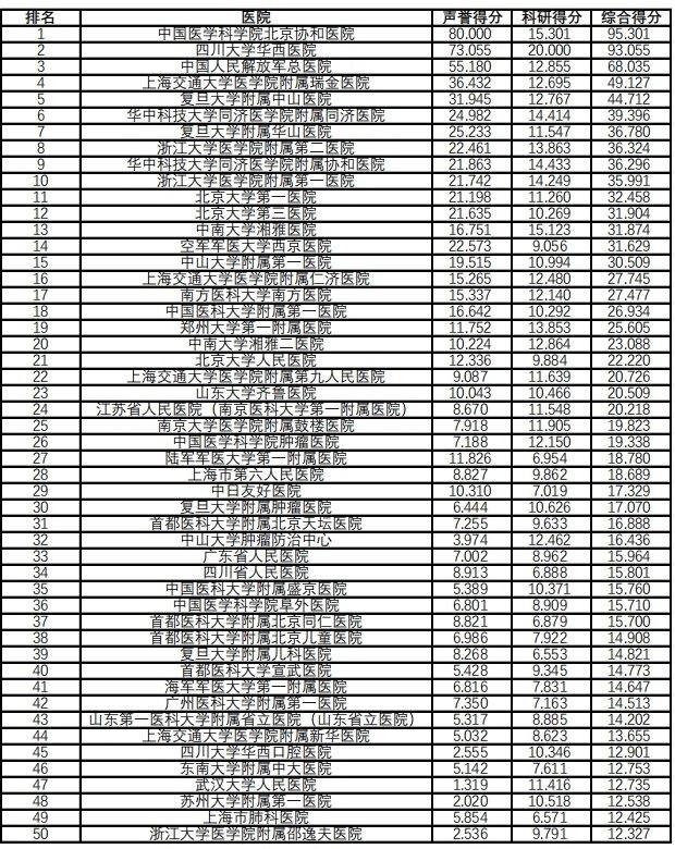 全国共有100家医院进入“复旦版中国医院综合排行榜”,45个专科(前10名)榜上有名。