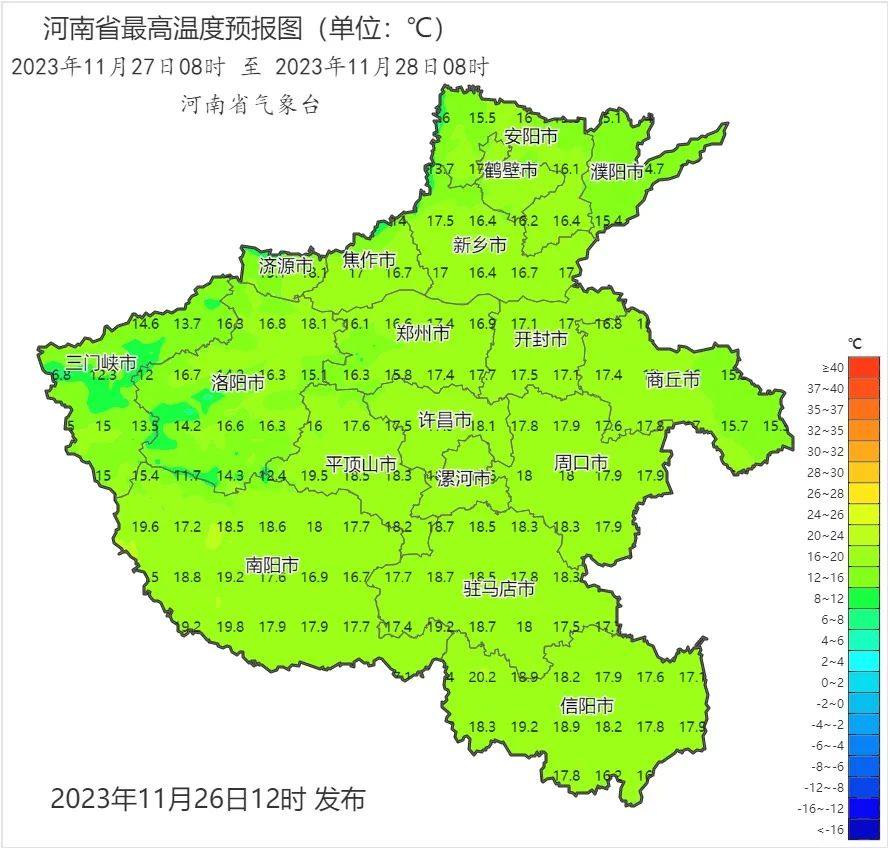 27日河南大部的最高气温