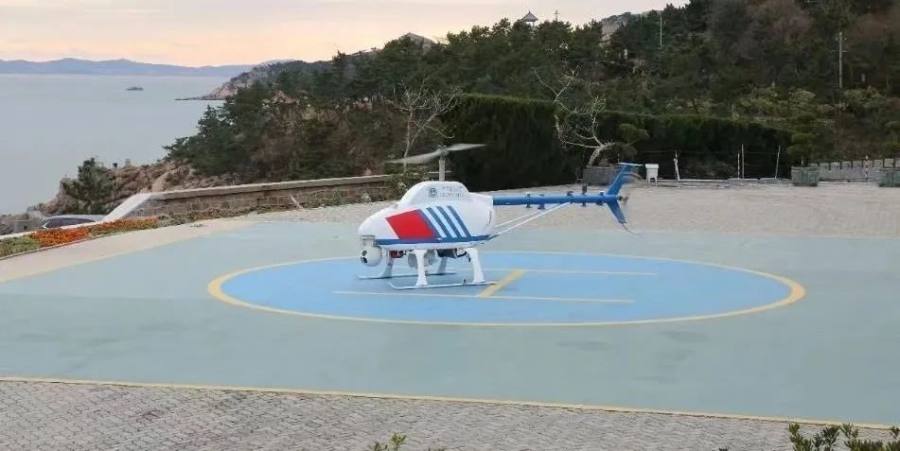 该无人直升机可搭载光电吊舱、机载船舶自动识别系统、应急抛投和定向扩音等先进设备,可实现红外热成像、远距离视频实时回传、应急救援物资投送等众多功能,还能在8级以下风力天气下执行任务,是目前我国海事系统投入应用最为先进的无人直升机。