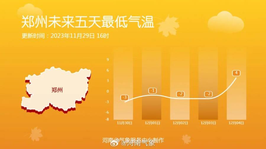郑州市今日最低气温-3℃,出门请注意防寒保暖。