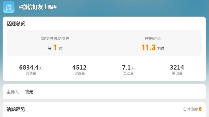 11月30日晚间,#微信好友上限#这一话题登上微博热搜第一,引发网友关注。