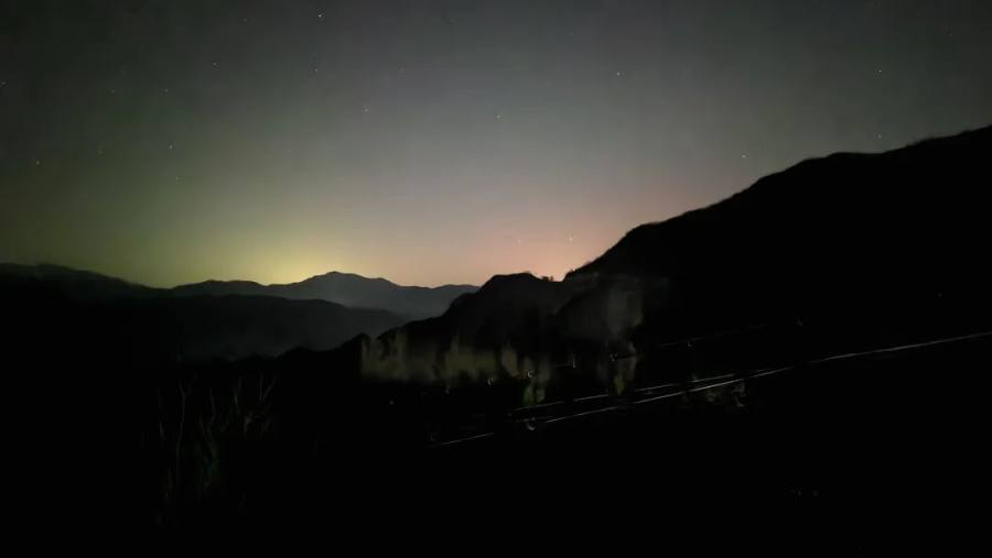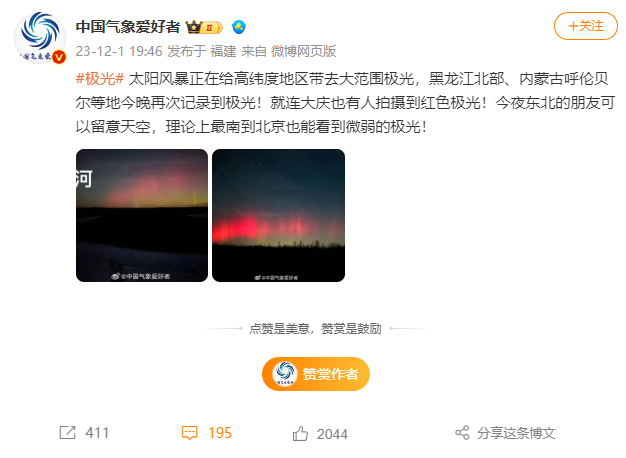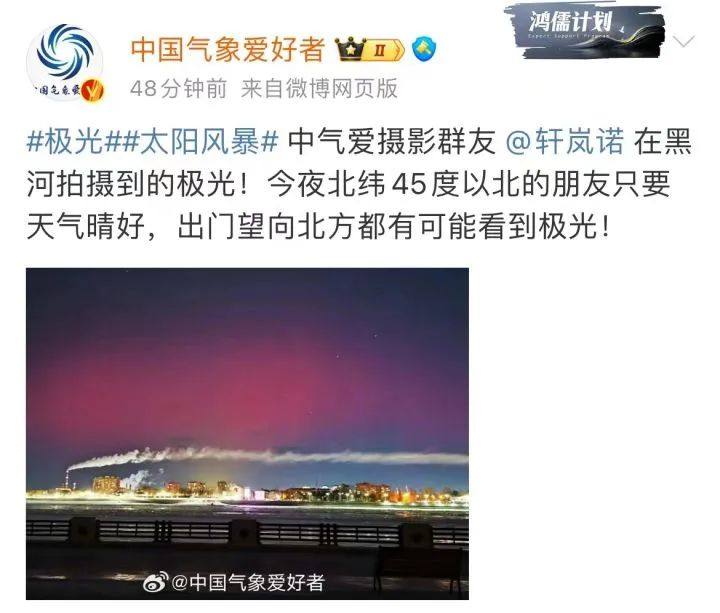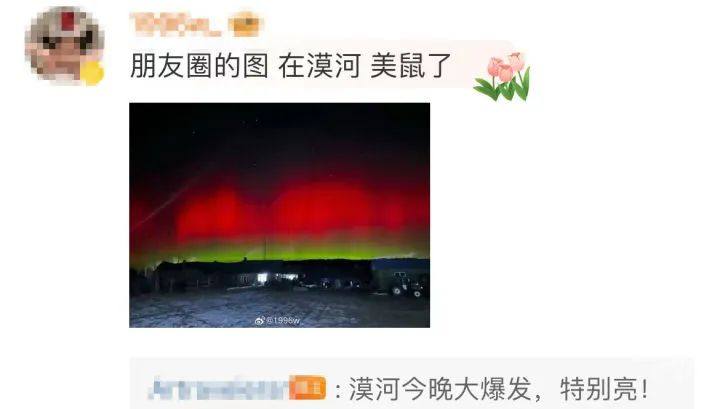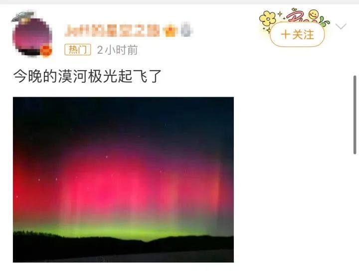 黑龙江漠河北极村出现极光,许多网友在社交平台晒出拍到的极光照片。