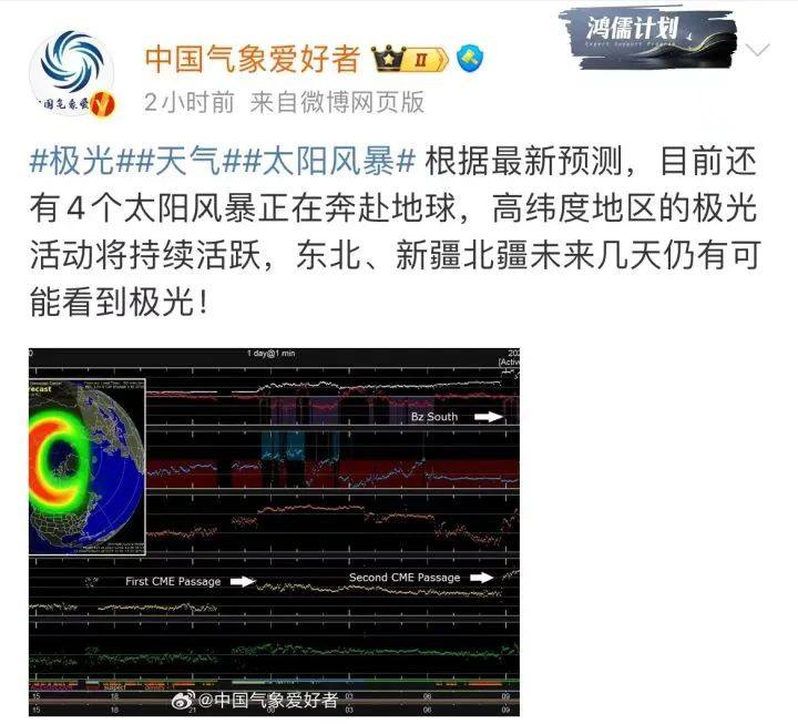 根据中国气象局空间天气中心监测,今明两天,我国可能出现地磁暴活动。在此影响之下,空间站可能因大气拖拽造成轨道高度下降,卫星导航设备误差增大,航空飞行将面临通讯环境变差和跨极区辐射的双重风险;对于公众,尤其是信鸽玩家和极光爱好者,未来几天要时刻注意空间天气信息。