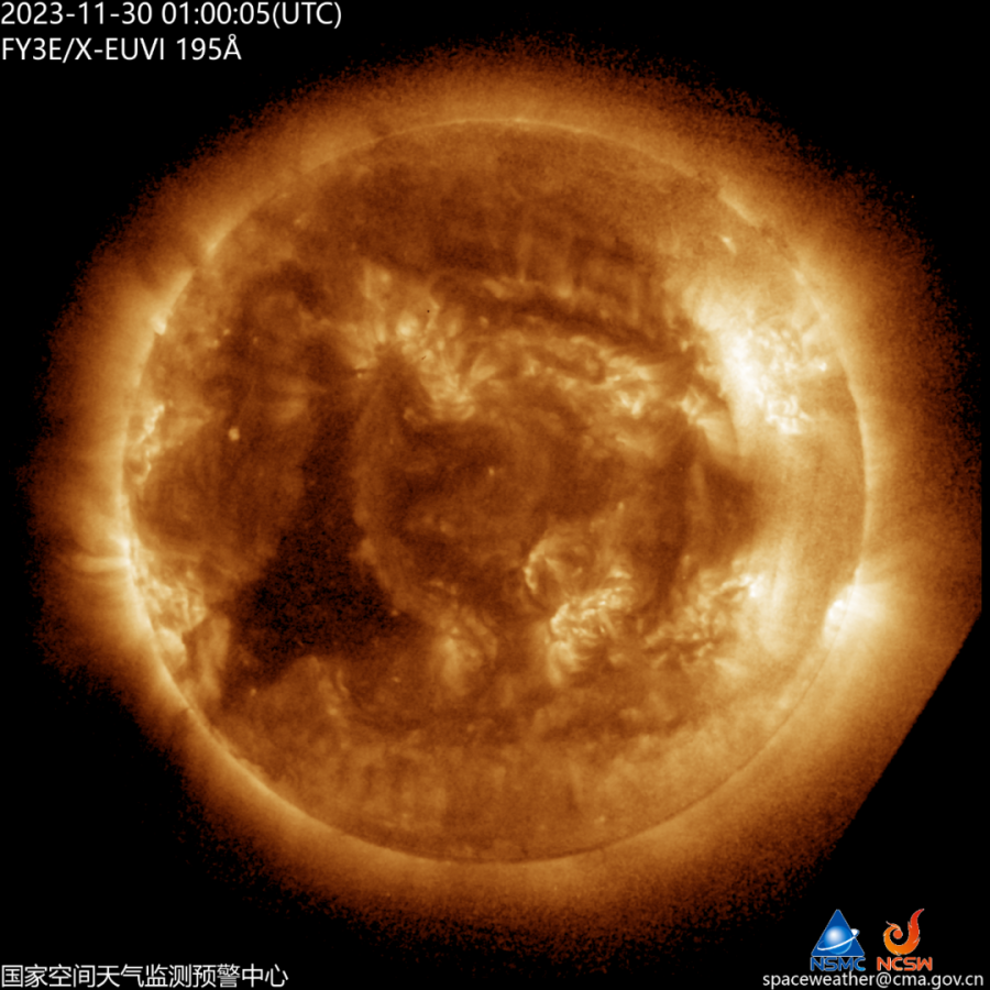 最先看到此次太阳爆发活动的是风云三号E星,尤其是第四次CME,在此之前的几十分钟内,太阳中部偏南的活动区亮度持续升高,形成了M9.8级耀斑,在随后的数十分钟内,大量日冕物质从此喷发而出。