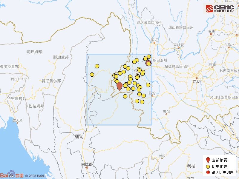 附近村镇:本次地震周边5公里内的村庄有大设、约岛、龙江、木那、街坡、邦界、路沙广、达弄、勐约洞、莫河堡,20公里内的乡镇有勐约乡、景罕镇、畹町镇、城子镇、西山乡。