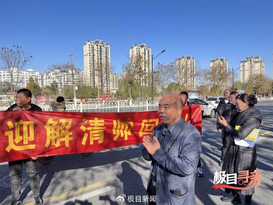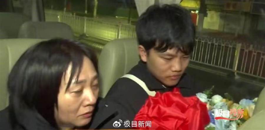 1日下午5时许,解克锋和儿子走出公安局大门,坐上前往欢迎仪式现场的大巴车。大巴车上,解清帅手里举着红花,母亲坐在他身边,两人不停擦拭着眼泪。这一天,他们等了25年。
