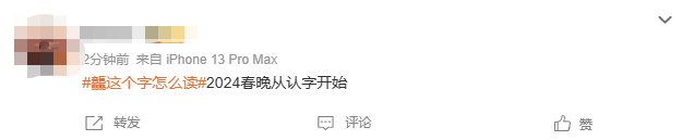 网友表示“2024春晚从认字开始”,也有网友直接答出正确答案,并表示曾在歌曲《生僻字》中听过。
