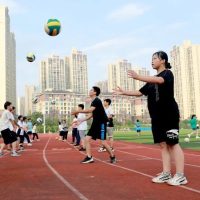 7月22日,在四川华蓥市双河第二中学,参加暑期校园体育托管班的学生在练习排球。新华社发(周松林摄)