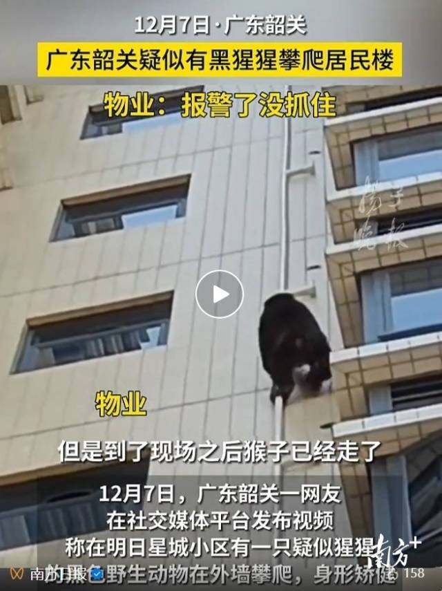 广东攀爬上居民楼外墙的黑猩猩什么来头?野保专家回应