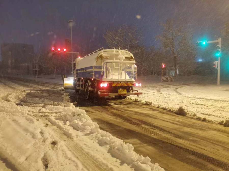 城管部门提醒广大市民,要时刻关注天气变化和路况信息,雪天行车要保持低速平稳驾驶,行车过程中要时刻观察路面,保持安全的车速和距离,注意出行安全。