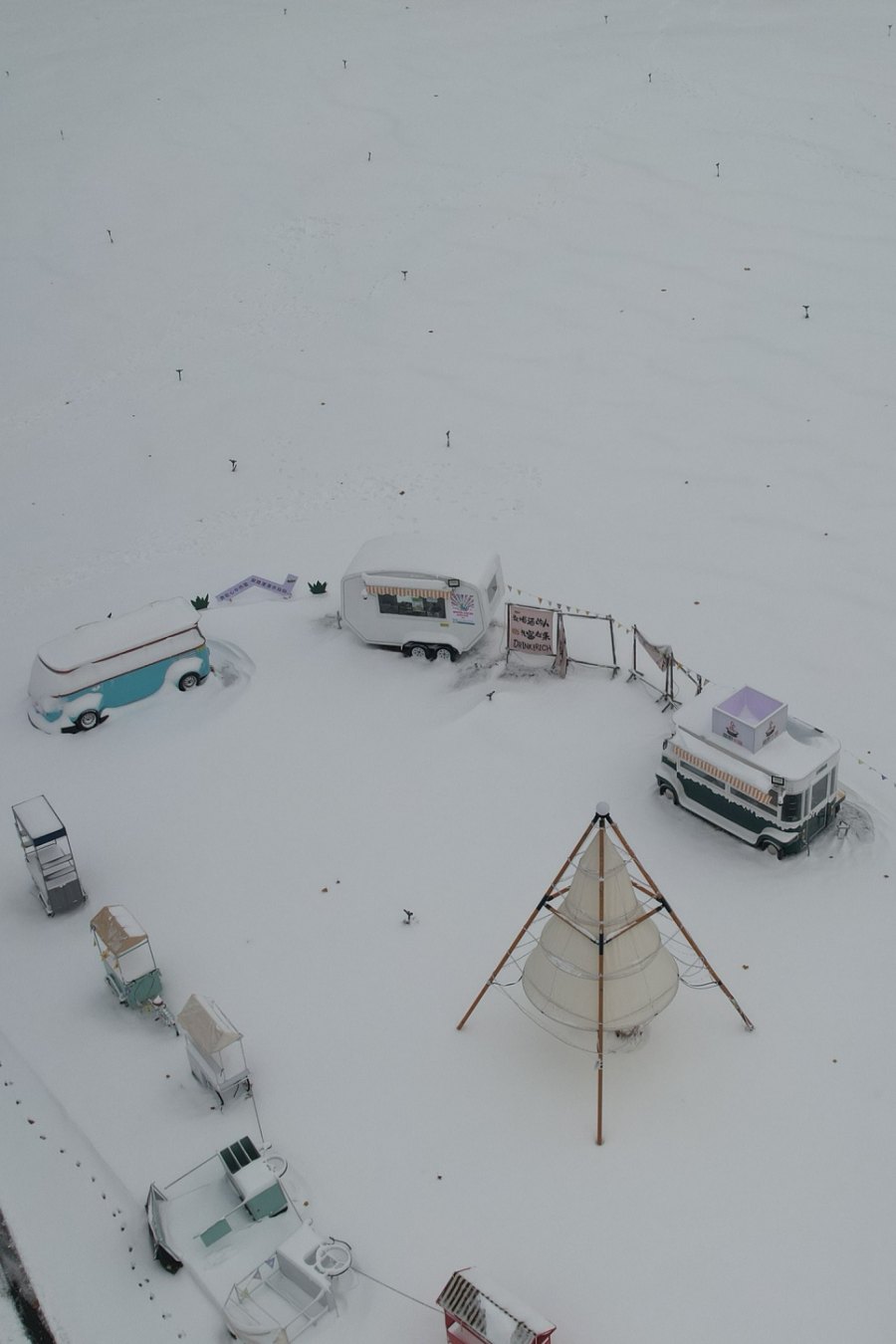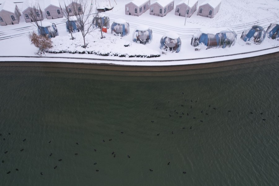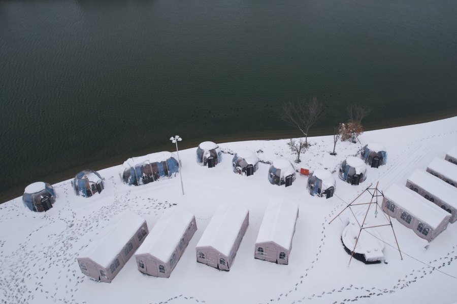 水畔旁边的露营小屋,在雪景中非常浪漫。