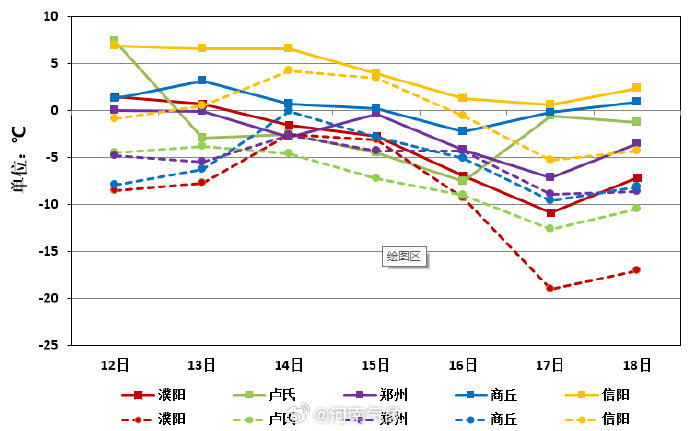 寒潮及低温:19日之前河南全省气温维持较低水平。其中12日凌晨最低气温北中部零下8℃到零下5℃;其他县市零下4℃到零下1℃,京广线以东等地将出现寒潮。16至19日预计全省大部气温较前期下降8到10℃,西部、北中部降幅达12到14℃;西部、北中部部分县市将出现寒潮。最低气温东部、南部零下7℃到零下3℃;其他县市零下12℃到零下10℃,其中西部、北部部分县市零下17℃到零下13℃,局部低于零下19℃。