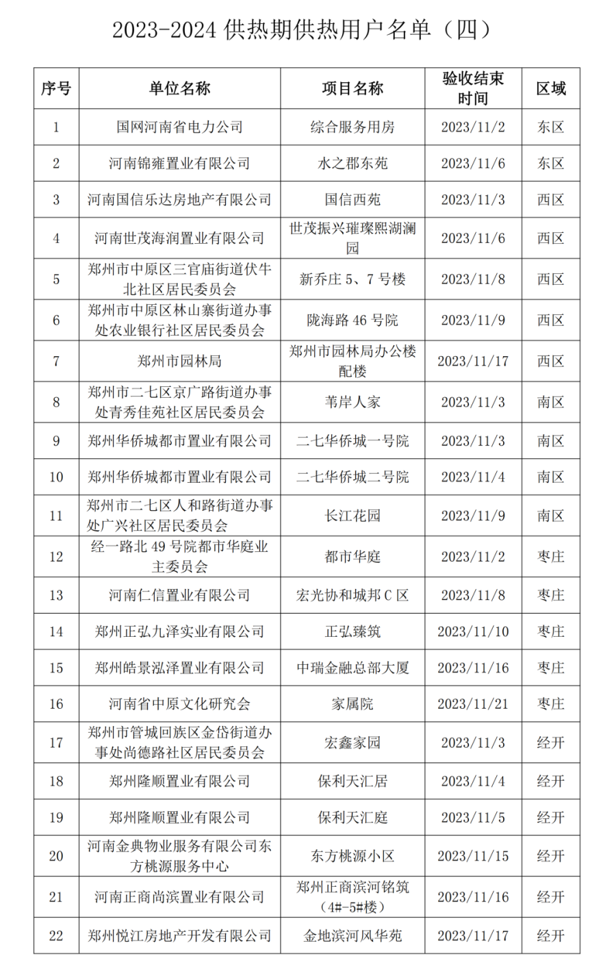 我公司根据项目所在区域热源调度情况,按已公示用户工程验收合格名单先后时间排列,确定第四批用户,到热力集团办结相关用热手续后,在2023-2024供热期予以供热。其余验收合格用户,我公司会根据区域热源调度情况,分批按排序确定供热用户,第一时间通知办理相关手续,请耐心等待。