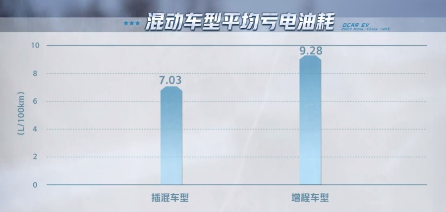 测试结果显示,亏电油耗方面,插混车型取得了压倒性优势,12辆插混车型的平均亏电油耗为7.03升,而增程车型则达到了9.28升。