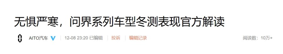 12月8日23时20分,问界官方发布了《无惧严寒,问界系列车型冬测表现官方解读》。其中对纯电续航达成率一事表示,“经测试媒体确认,车辆在正式测试前进行了共计71分钟的空调制热,在车内温度达到24摄氏度后,又持续制热40分钟。在此过程中有十余次开关车门、车窗的操作,其中最长时间超过3分钟,大大增加了空调能耗,导致电量快速下降。在严寒极限及空调持续制热条件下,多次长时间开车窗、车门,严重背离用户真实使用场景。另外,值得注意的是,在车辆电量仅剩74.9%,搭载驾驶员及4个60公斤沙袋的情况下才开始测试,到电量为20.4%时增程器开始启动,实际消耗电池电量54.5%,实现冬季极端天气条件下纯电续航55.3公里。”