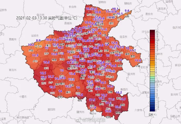 郑州的气温更是直冲21℃