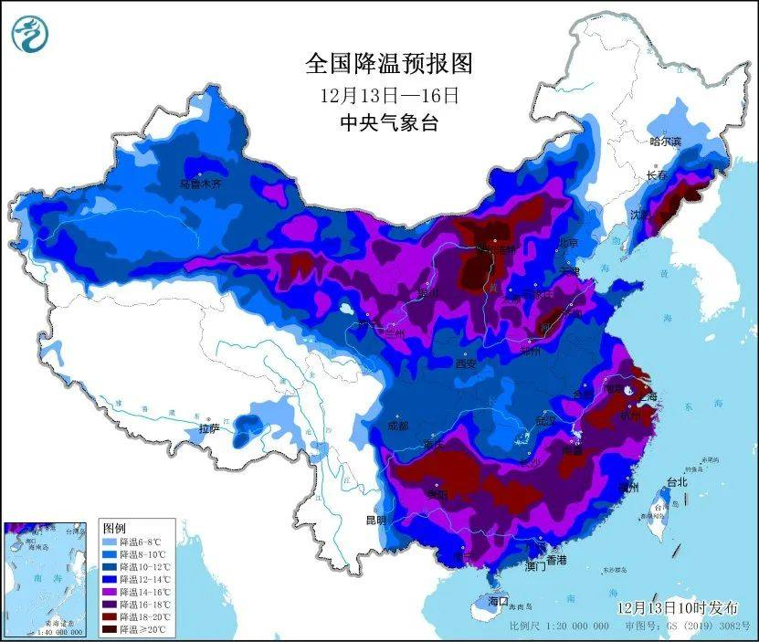 目前,寒潮天气已率先影响我国新疆北部,预计13至16日,全国大部气温下降8至12℃,西北地区、内蒙古中西部、华北西部及江南、华南北部、贵州等地的部分地区降温幅度可达14℃以上。17日早晨最低气温0℃线可南压至贵州南部和江南北部一带,-10℃线位于黄淮北部至秦岭一带。