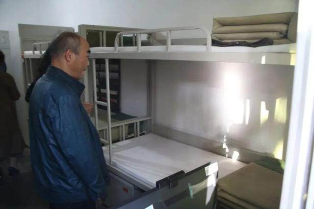 在肖坤琦曾住过的床铺前