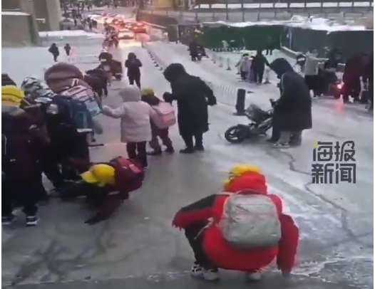 据二三里资讯报道,12月14日,山西太原,多名家长拍视频反映,由于道路结冰,送孩子上学只能连滚带爬。不少家长在线呼叫太原停课。太原市政府服务热线对此表示,已经接到反映,会反馈给相关部门。