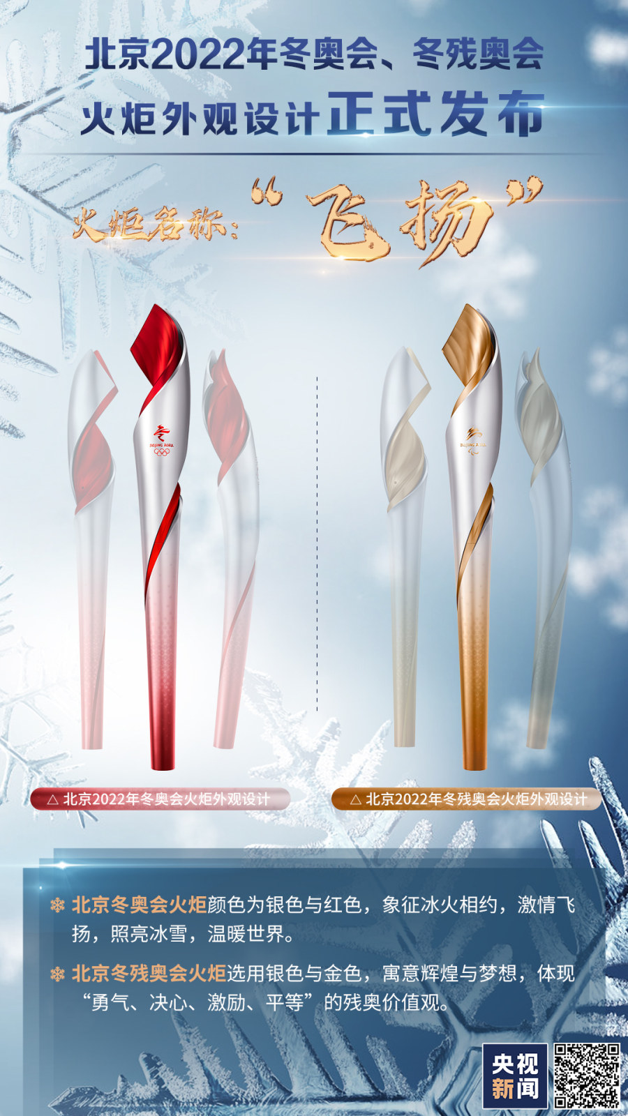 (原标题《北京2022年冬奥会、冬残奥会火炬外观设计正式对外发布》)
