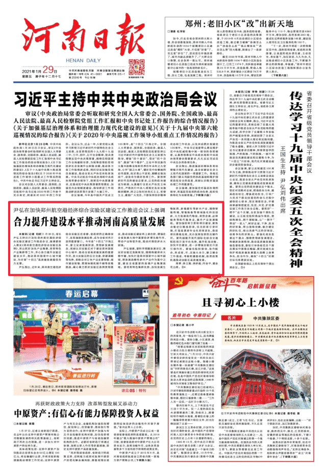 1月28日,尹弘主持召开加快郑州航空港经济综合实验区建设工作推进会议上,尹弘就提到,要放大实验区的区位交通、资源禀赋等优势,积极应对主导产业支撑较弱、城市建设较慢、管理体制机制不顺等困难挑战。