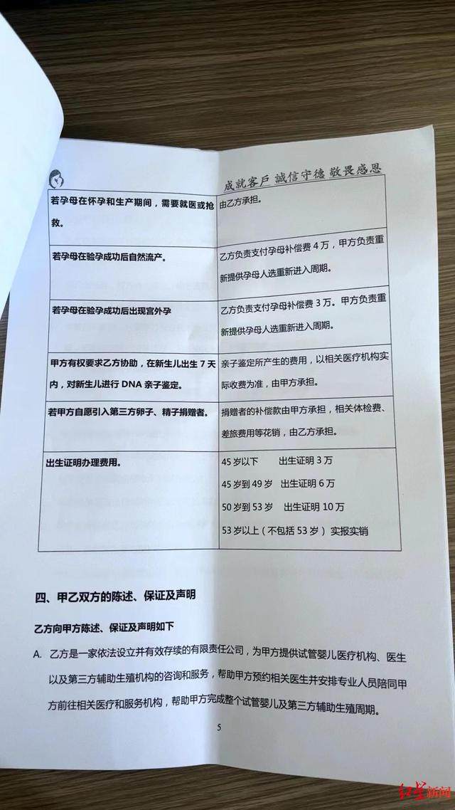 众所周知,我国一直明令禁止代孕,然而据举报人称,涉事公司作为代孕中介却是“资历颇深”,仅上官正义就掌握到了多份该公司与客户签订的试管及代孕合同。据其中一份合同显示,该公司除了试管婴儿服务外,还提供第三方辅助生殖服务,实际上就是代孕。