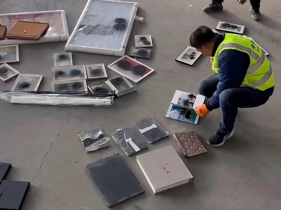 拆快递,拍视频跟顾客做销毁前的最终确认,将照片关键部位用黑色喷漆进行掩盖,放进粉碎机,同时给客户拍粉碎视频,再送进电厂高温溶解......