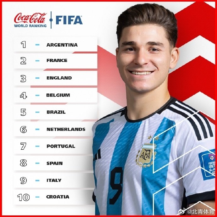 世界冠军“潘帕斯雄鹰”阿根廷队高居榜首,高卢雄鸡法国队和三狮军团英格兰队分列二、三位。