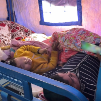 地震发生后,马哈妹慌忙跑进屋内,房顶已经塌了下来,塑料板子砸在了女儿身上。马哈妹知道孩子的身体不能轻易移动,但她来不及想那么多,她先挪开了女儿身上的塑料板,抱起女儿往外跑,边跑边喊丈夫和公公去抱较重的大儿子,她心里只有一个念头:骨折也好,不骨折也罢,能保着孩子的命就好。