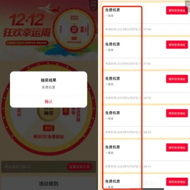 近日,不少网友反映在海南航空APP上参与“12·12狂欢幸运周”抽奖活动抽中免费机票,却被告知不予兑换。对此,海航工作人员回应称,系统出现大量异常访问,导致包括免费机票在内的奖品中奖数量严重超出活动规则及系统预设数量,暂不予兑换,后续有进一步调查结果将及时告知。(12月21日澎湃新闻)