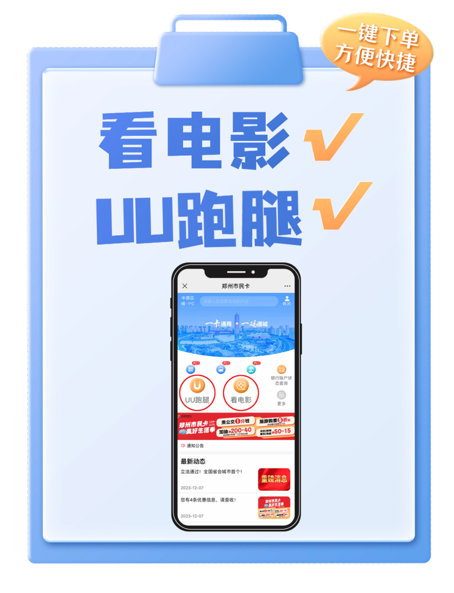据了解,本次服务扩充主要借助郑州社保卡(市民卡)服务线上线下相结合的优势,从百姓精神文化需求和效率提升两方面入手,满足大家的多元化需求,进一步丰富百姓用卡场景,建设人民满意的服务型政府。郑州市社保卡持卡用户(含省直用户)均可通过郑州市民卡公众号,进入【市民卡服务】点击【看电影】及【uu跑腿】,进行体验,并享受社保卡专属优惠价。