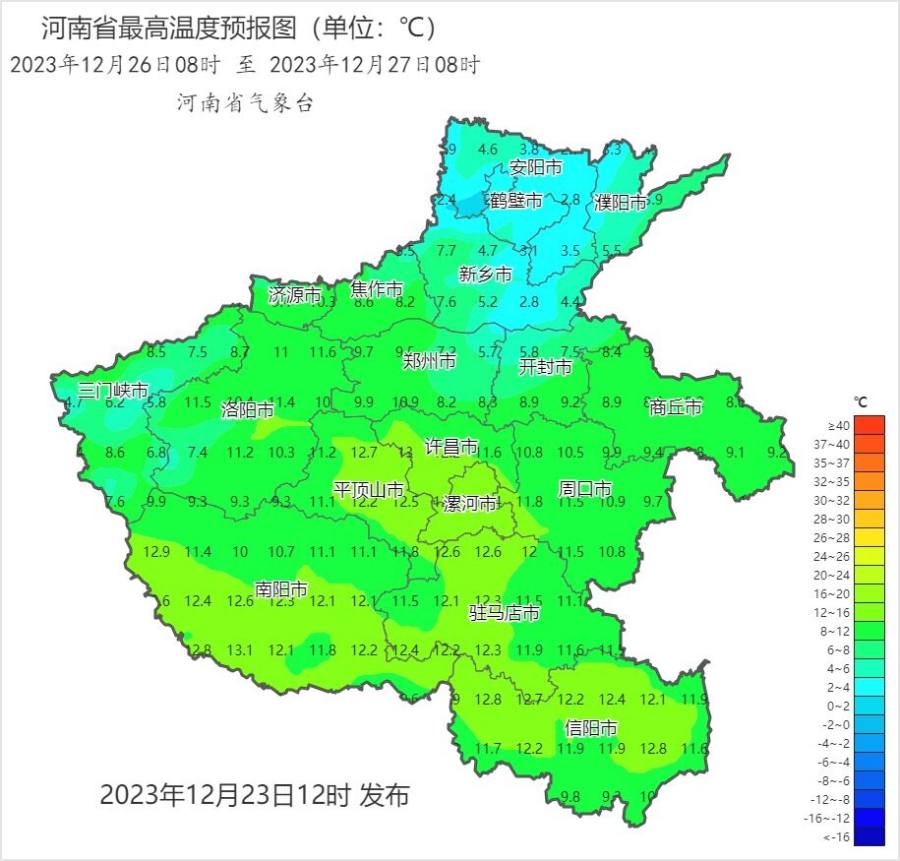 预报来源:河南省气象台2023年12月23日12时预报