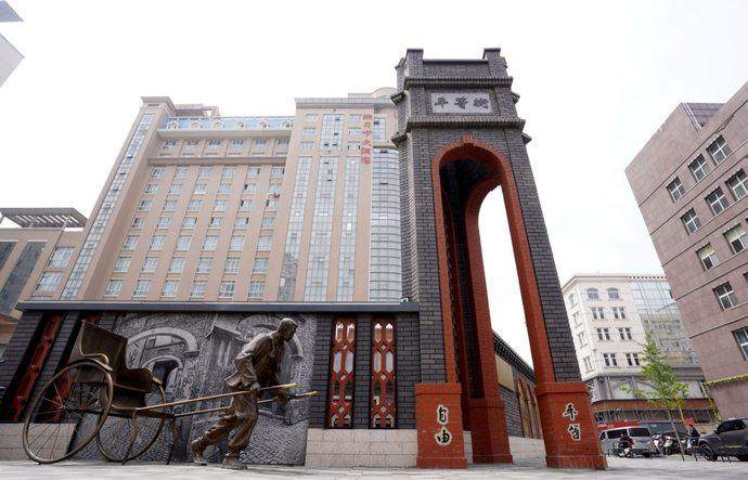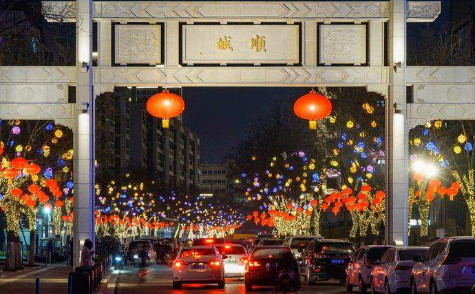 从郑州商城游园向南过天桥,便来到了著名老街——北顺城街,南北走向的街道全场410米,却拥有郑州市街道中少见的“老式牌坊”。“顺城”二字从右到左安静浮刻在牌坊中央,古朴的牌坊下来往车辆川流不息,人群熙攘。