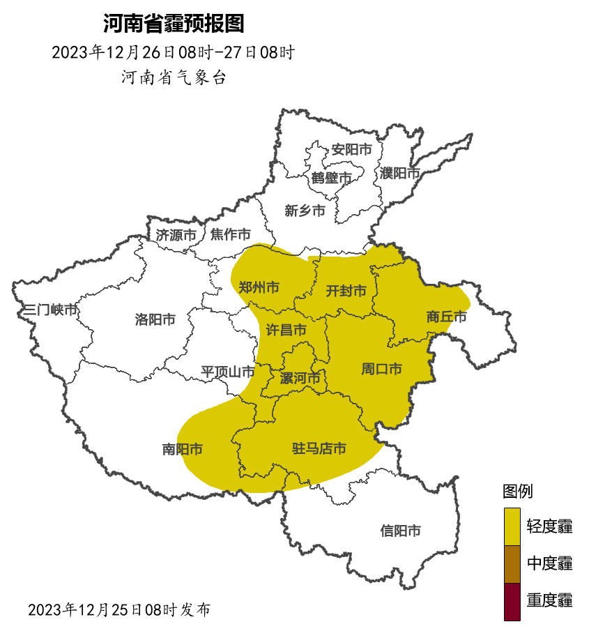 25日夜里到明天早晨,西南部、中部、东北部部分县市有雾。