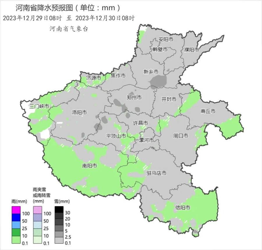 29日,全省阴天,大部有小雨,西部山区有雨夹雪或小到中雪。