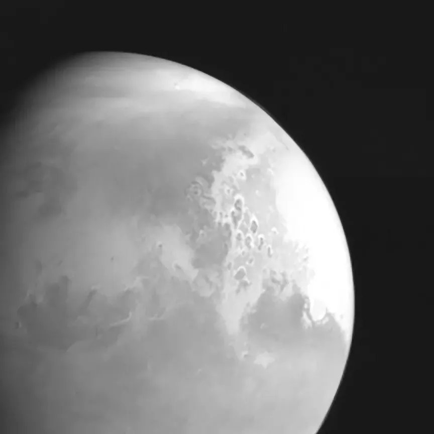 在距离火星约220万公里处,天问一号获取了首幅火星图像。