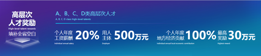 该计划注重工作理念的创新、支持力度的突破,出台多项措施吸引人才。比如,在高层次人才奖励方面,对认定的A、B、C、D类高层次人才,按个人年度工资薪酬的20%给予用人主体最高500万元的引才育才工作经费支持,并按照其个人年度地方经济贡献的100%给予最高30万元的奖励。在青年高学历人才吸引方面,在享受生活补贴的同时,到区重点企业工作满12个月的全日制博士研究生、35岁以下硕士研究生分别给予3万元、2万元一次性安家补贴。