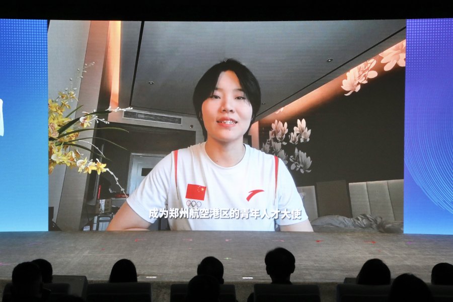 “青年更有为、城市更友好”,发布会上,东京奥运会场地自行车女子团体竞速赛冠军、航空港区“青年人才大使”鲍珊菊为郑州航空港区进行视频推介。来自北京大学、清华大学、北京师范大学、郑州大学的4名航空港区“青年引才大使”依次上台发言。