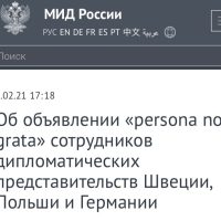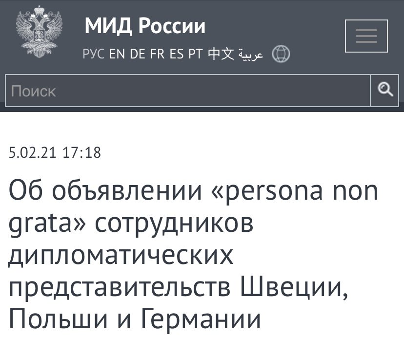 2月5日晚俄罗斯外交部在其网站发布消息,将来自瑞典,波兰和德国的三名外交官列为不受欢迎的人,并要求三人尽快离开俄罗斯。