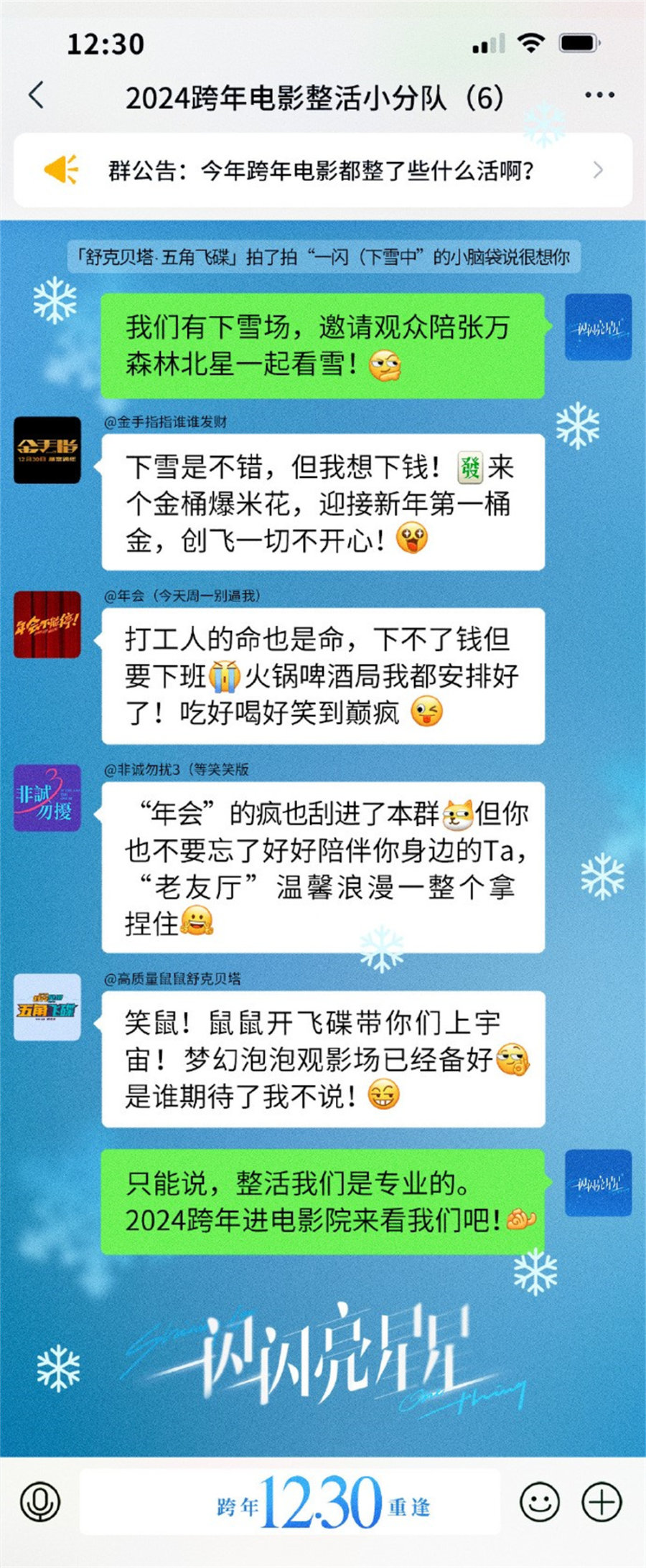 事实上,在《一闪一闪亮星星》的绝对优势下,留给其他影片的空间属实有限。为了吸引观众,今年的元旦档影片在保持了原本各自作为电影的品质和看点之外,也在新年的仪式感上大做文章。