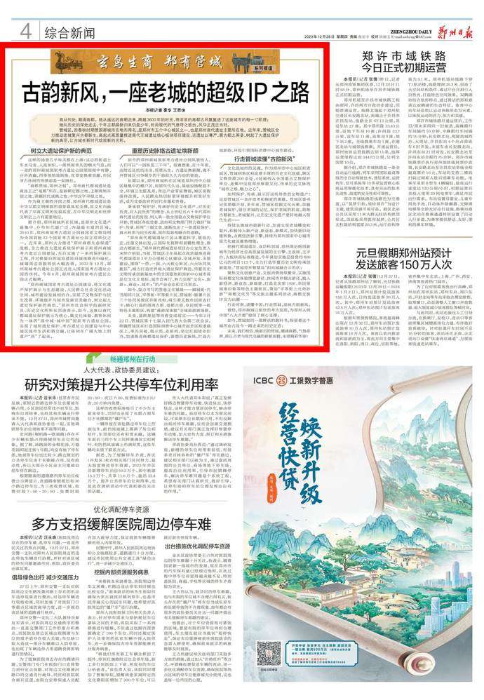 当前,郑州市加快实施文旅文创融合战略,打响“天地之中 华夏之源 功夫郑州”城市文旅品牌,树立郑州国际知名文化旅游目的地和华夏历史文明传承创新基地中的全国重地整体形象。时值年终岁尾、辞旧迎新之际,为进一步凸显郑州本地文化特色,重点打造“商文化”品牌,本报推出“玄鸟生商 郑有管城”系列报道,深入挖掘管城历史文化资源、展现当代管城焕新登场新面貌。