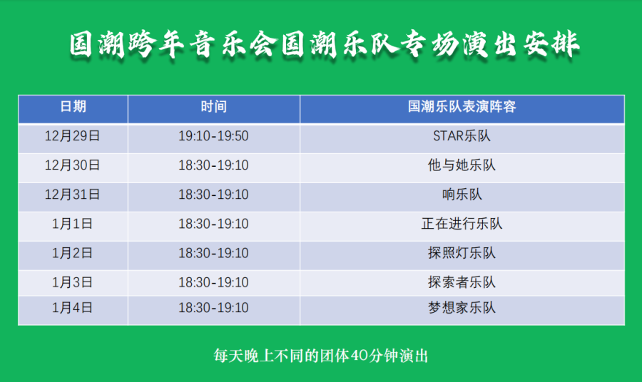 3.2023年12月29日至2024年1月4日18:30-20:30在郑州商都国家考古遗址公园草坪将举办国潮跨年音乐会。