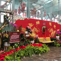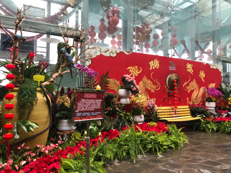 花展期间为增添节日氛围,热带雨林特色景观“独木成林”“空中花园”“菩提观莲”等景点也进行了精心设计与装扮,增加蝴蝶兰、石斛兰、文心兰、地涌金莲等20余种热带植物,营造出繁花似锦、春暖花开的新春氛围。