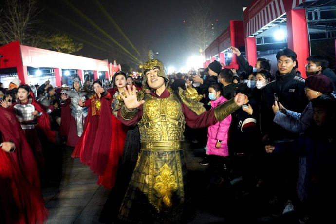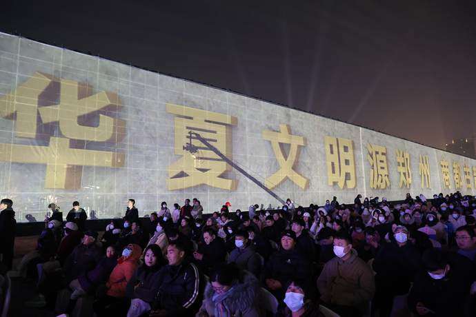 12月29日,夜色渐起,璀璨灯光为巍然耸立3600多年的商代城墙披上华彩外衣。当晚,“巍巍亳都 熠熠新年”2024郑州国际商都跨年文化节在郑州商都国家考古遗址公园正式启动。