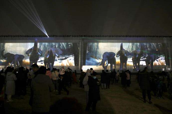 当商代城墙遇上3D光影秀,历史一下子鲜活起来。裸眼3D光影秀中,商代城垣和宫殿气势磅礴,饕餮和青铜器上的饕餮纹威武严肃,还可一览杜岭方鼎、兽面纹铜方鼎、兽面纹铜圆鼎、金覆面、牛肋骨刻辞等商代文物的风采。