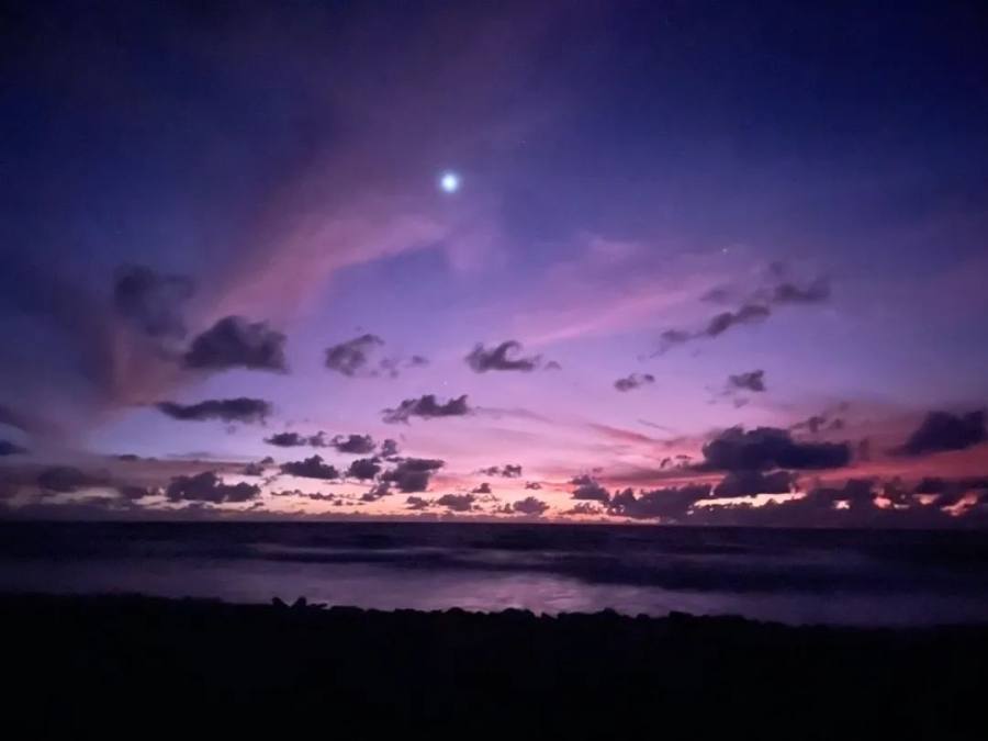 基里巴斯于1994年12月31日将地处西10区的莱恩群岛改为东14区(比北京快6小时)后,即稳居世界“最早迎来黎明(新年)”宝座。图为地处东14区的圣诞岛早上5点30分的日出景象。陈效卫摄