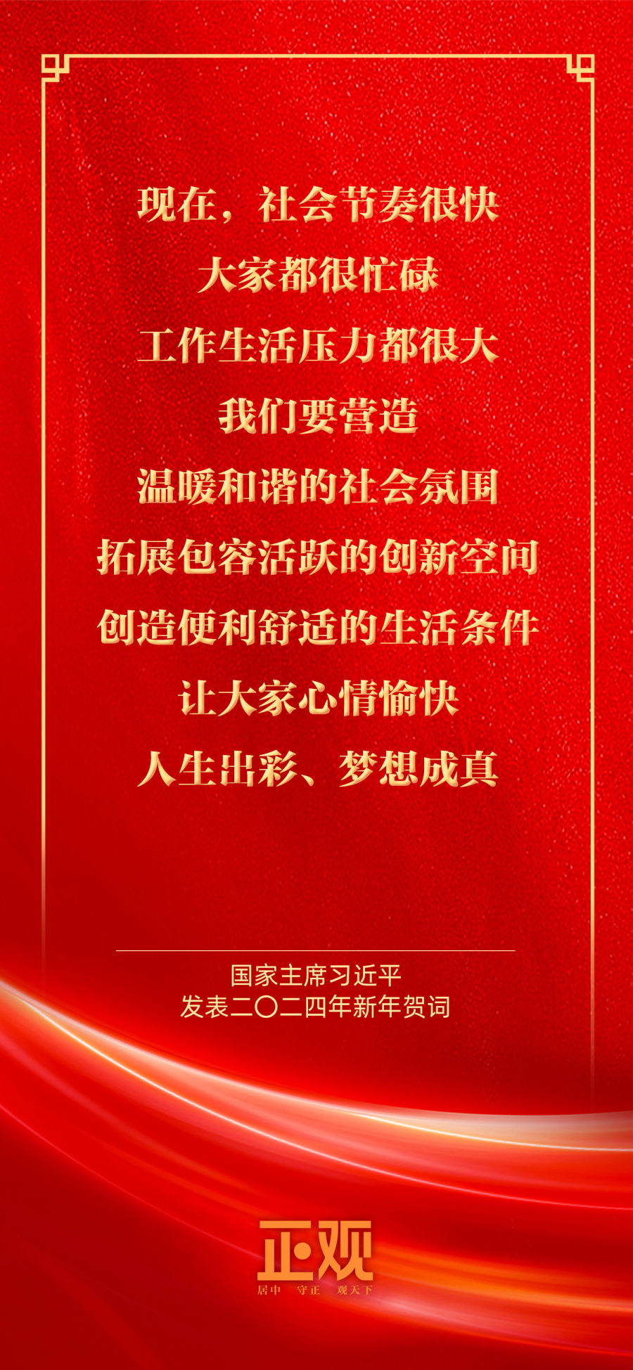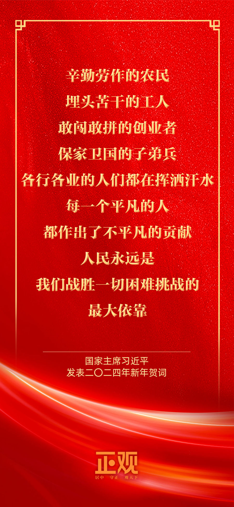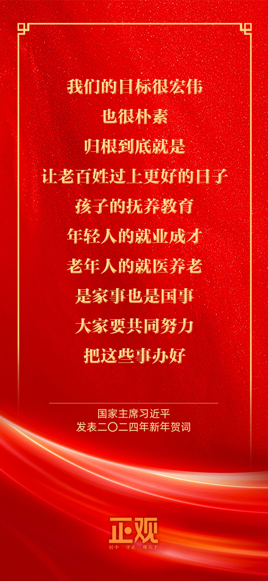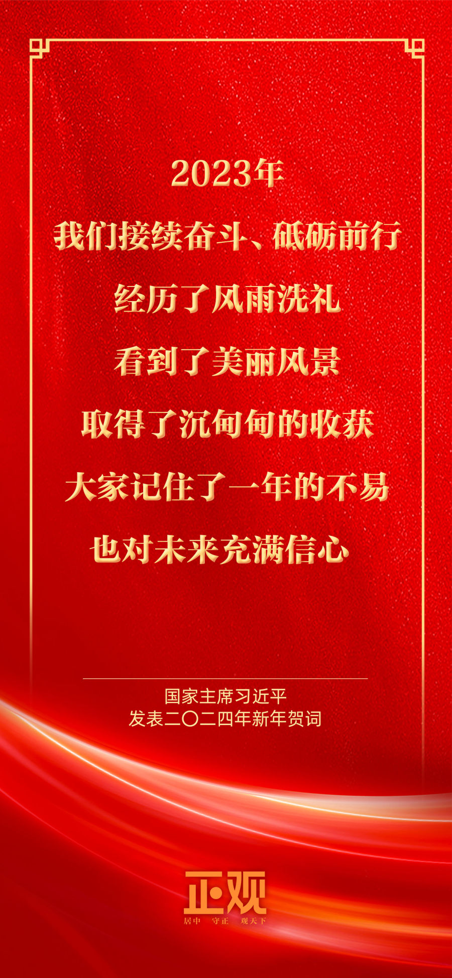 新年前夕,国家主席习近平通过中央广播电视总台和互联网,发表了二〇二四年新年贺词。全文如下: