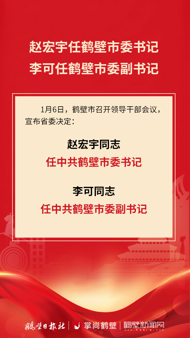 赵宏宇任鹤壁市委书记,李可任鹤壁市委副书记