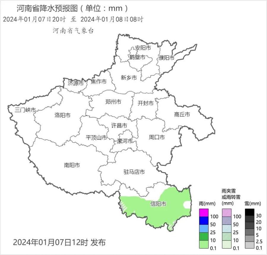 预报来源:河南省气象台2024年1月7日12时预报