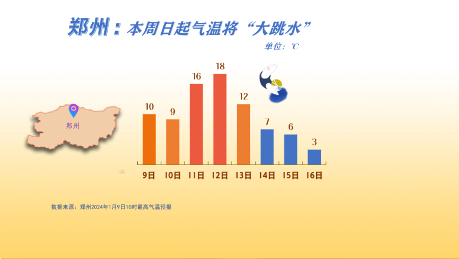 9日下午到夜里,晴天间多云。偏北风3到4级,阵风6级。最高温度:10到11度。最低温度:零下3度到零下2度。